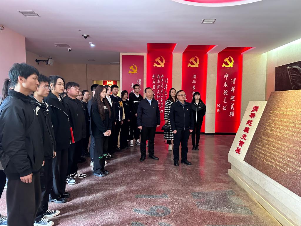 在渭华起义陈列大厅,师生们驻足观看、认真听讲,看着历史的照片、泛黄的文件和简单的武器,大家仿佛重新回到那段血与火的峥嵘岁月,正是渭华起义的烈士们前仆后继,用鲜血和生命谱写了波澜壮阔的革命史诗,才树起了党和人民血肉相连,生死与共的不朽丰碑。