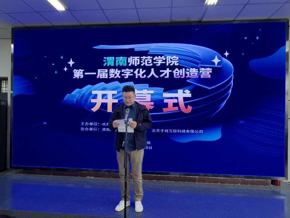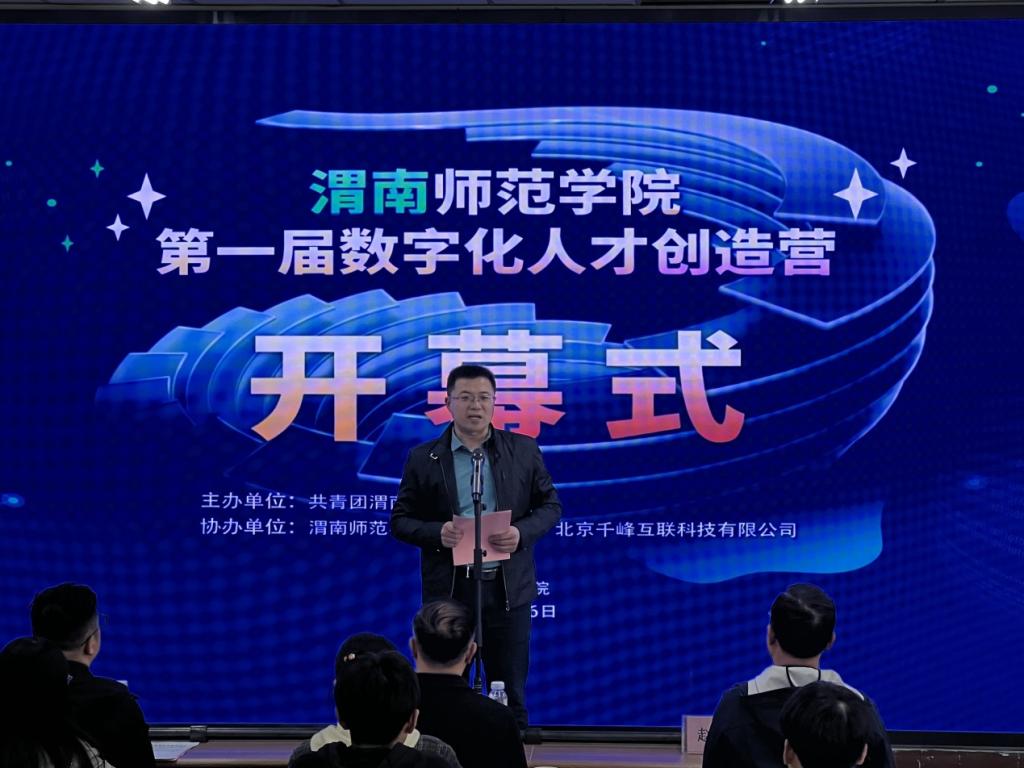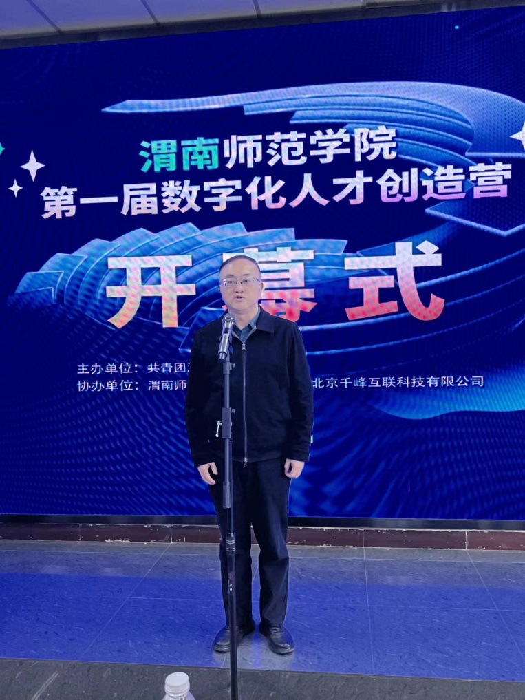 4月6日下午,由校团委主办、计算机学院承办的第一届数字化人才创造营活动开幕式在一号教学楼1101阶梯教室举行。学校党委副书记袁亮、团委书记赵琦、北京千锋互联科技有限公司院校合作部总监路愿飞以及计算机学院党政班子成员、企业代表、教师代表及100余名学生代表参加大会。大会由计算机学院副院长哈渭涛主持。
