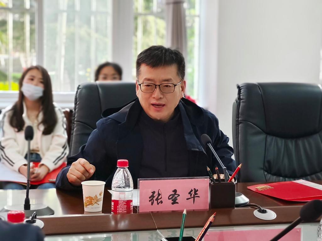 韩小卫致欢迎辞。他对张圣华的到来表示欢迎,简要介绍了bat365官网办学历史、师资力量、教学科研及“全民阅读,书香校园”活动开展情况。