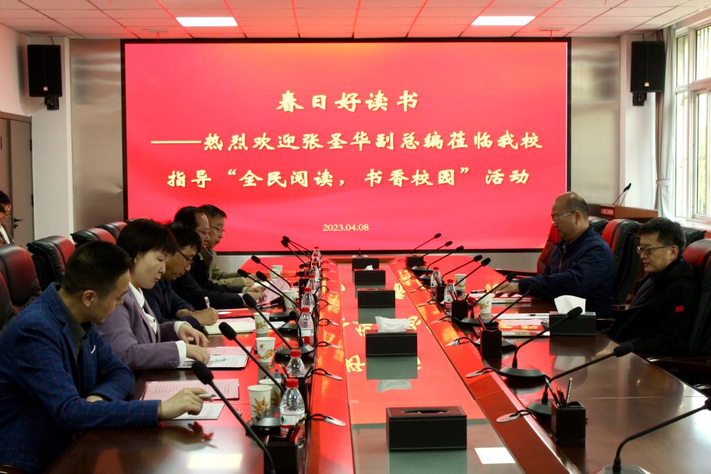 4月8日,《中国教育报》常务副总编张圣华一行莅临bat365官网指导“全民阅读,书香校园”工作。校党委副书记韩小卫出席活动,人文学院院长赵前明主持会议。