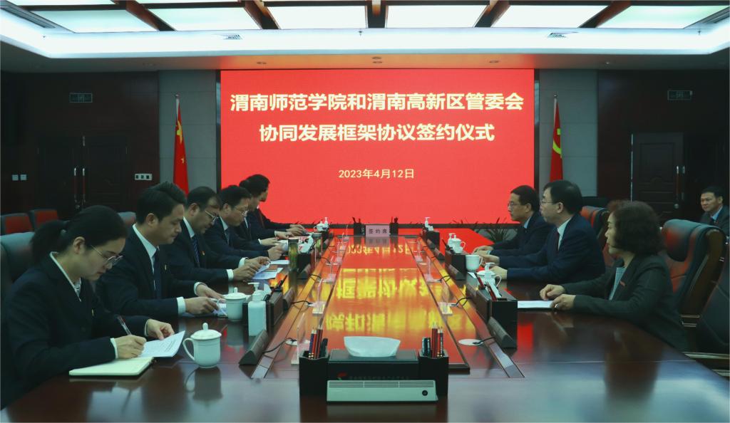 4月12日,bat365官网与渭南高新区管委会协同发展框架协议签约仪式在渭南高新区举行。渭南市委常委、市委组织部部长,高新区党工委书记高振鑫,高新区党工委副书记、党群工作部部长党锋,高新区党工委委员、管委会副主任樊波,bat365官网校长张守华,副校长王菊霞、曹强出席签约仪式。签约仪式由高新区党工委副书记、党群工作部部长党锋主持。