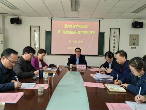 4月12日,学校党委第一巡察组召开巡察化学与材料学院党总支工作动员会。巡察组组长杨洁就巡察工作作了动员讲话,学校党委副书记、纪委书记肖耀刚就切实做好巡察工作提出要求,化学与材料学院党总支书记韩城忠主持会议并作表态发言。