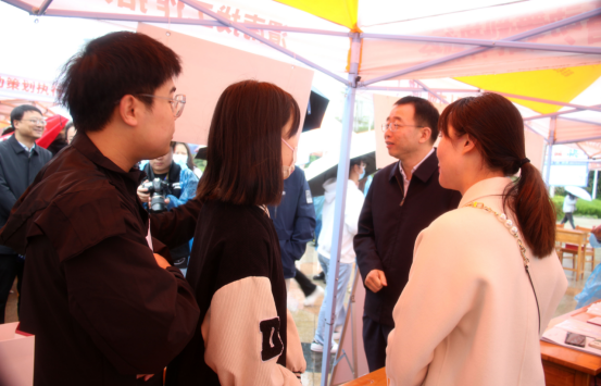 bat365官网校长、党委副书记张守华,党委副书记、纪委书记、监察专员肖耀刚,党委副书记袁亮,党委委员、副校长常青林,渭南市人力资源和社会保障局党组成员、副局长董建明,渭南市公共就业和人才交流服务中心主任马会斌等领导亲临招聘会现场指导,与用人单位、参会学生亲切交谈。张守华向来校招聘的单位表示欢迎,对返校招聘的往届校友表示感谢,对应聘的毕业生表示勉励,希望学校与各单位加强联系与协作,进一步完善校地、校企合作机制,为学生搭建良好的就业、实践平台,为企事业单位发展提供优质人才资源。