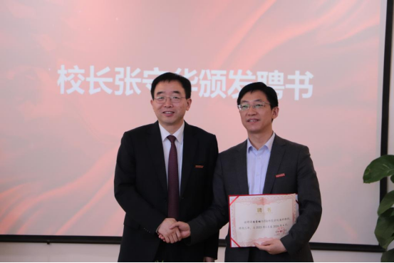 副校长王菊霞宣读聘任文件,聘任中国兵器工业集团国营第804厂党委书记、董事长代五四,重庆市委党校科研处处长、三级教授、国务院政府特殊津贴专家侯晋雄为兼职教授;聘任日联科技有限公司董事长刘骏为客座教授;聘任渭南市人大常委会秘书长、机关党组书记王杰生,韩城市教育局党组书记、局长、市政府总督学郑武军,灞桥区教育局局长曹宏顺,大荔县教育局党委委员、副局长、大荔中学校长周明为“优师计划”校外辅导员。校长张守华代表学校颁发聘书。