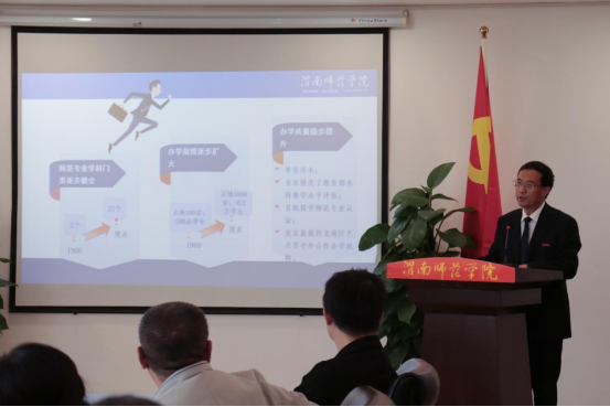 韩小卫在主持讲话中指出,学校将以聘任兼职(客座)教授、“优师计划”校外辅导员为切入点,全面贯彻党的二十大精神和党的教育方针,促进与企业、中小学的深度合作,加强基础教育服务能力建设,建立中小学教师校长为师范生授课机制,不断提高办学水平,更好地为党育人、为国育才,培养更多德智体美劳全面发展的社会主义建设者和接班人。