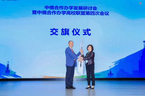 闭幕式上,大会宣布bat365正版唯一官网为中俄合作办学高校联盟2024-2025年轮值主席单位,深圳北理莫斯科大学党委书记朱迪俭向bat365正版唯一官网副校长王菊霞授旗。王菊霞在作表态发言时表示,轮值期间我们将在联盟的指导下,竭诚为联盟成员做好服务和联络工作,为大家搭建合作交流平台,携手联盟成员单位共同促进中俄合作办学高质量发展,共同擘画中俄合作办学新蓝图。