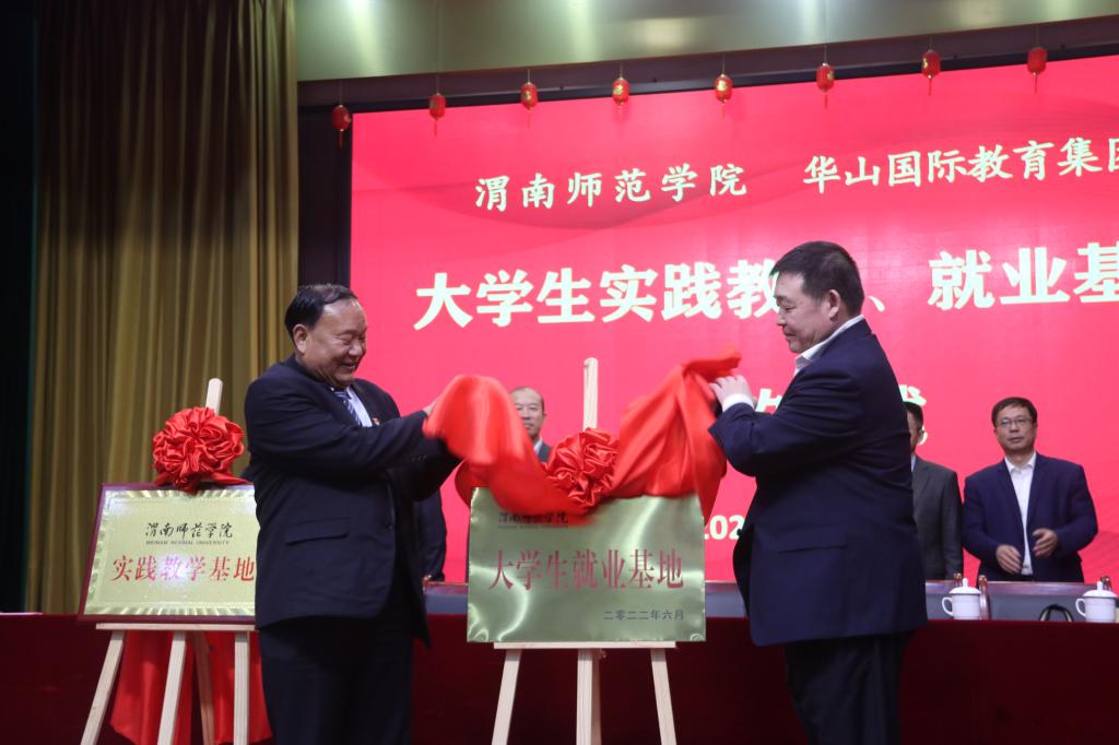 华山国际教育集团董事长任永敏、副总裁张六民、渭南学区总裁王波显、渭南永兴高级中学校长杨森望、西北新世纪中等专业学校校长肖鹏、渭南轨道交通运输高级技工学校校长朱相心出席签约授牌仪式,仪式由集团人教部部长王桃萱主持。