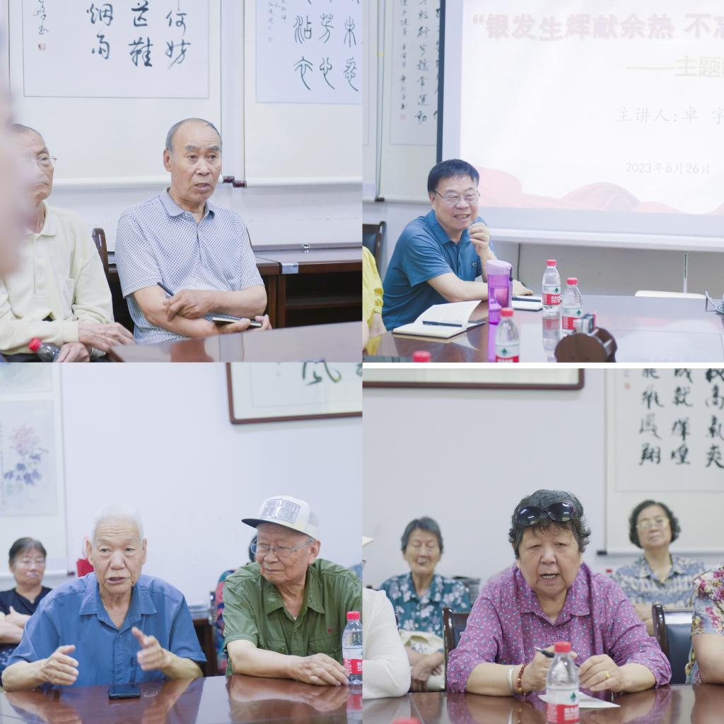 党课结束后,卓宇和与会老同志就师资队伍建设、教学、科研、申硕升大、服务保障等问题进行了热烈交流,并对老同志们的意见建议作了认真记录。