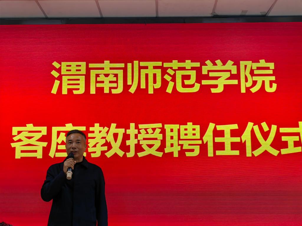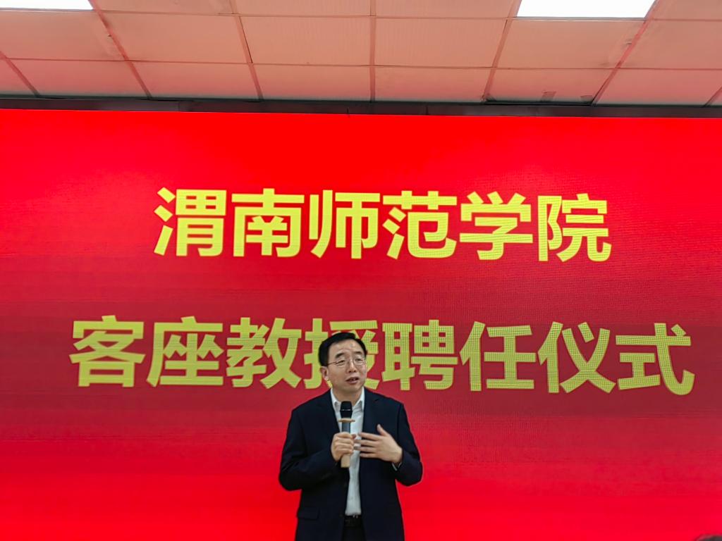 张守华代表学校,感谢渭南市政府、市工商联对学校发展的关心、支持和帮助。他表示,此次客座教授聘任仪式,是落实省市共建合作协议、服务地方的重要举措;是围绕立德树人根本任务,推动“思政小课堂”融入“社会大课堂”的有效探索;是建立“政校联企”四方协同机制的重要开端。少遇名师,何其有幸。希望同学们学习受聘教授的奋斗精神,用脚步丈量祖国大地,用耳朵倾听人民呼声,有理想、敢担当、能吃苦、肯奋斗,为渭南、陕西、中国、全世界的发展做出贡献。他提出四点建议:站位要高,着力培养大思政人才;格局要大,为全社会提供一流人才;重点要明,建立覆盖全面、资源共享的人才培养体系;机制要新,推进一体化新格局。
