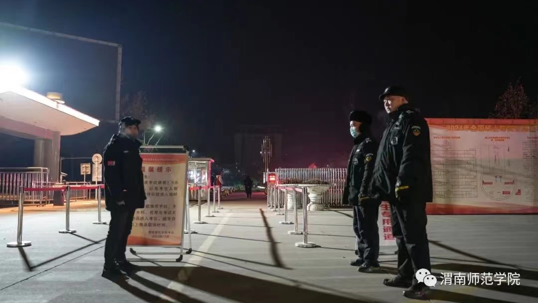此次考试,校市有关部门积极对接,全力做好服务保障。渭南市公安局党委委员、副局长宁双喜亲临考点,实地检查督导安保工作,对进一步严密考点安保、秩序维护、外围管控、交通疏导和应急服务保障等工作提出明确要求,并反复叮嘱现场执勤民警要确保勤务安全。出动交警、治安、刑侦、特警等警种为研考工作顺利进行保驾护航。bat365官网保卫处全体人员坚守岗位、文明执勤、认真履职,维护考点、考场安全秩序。