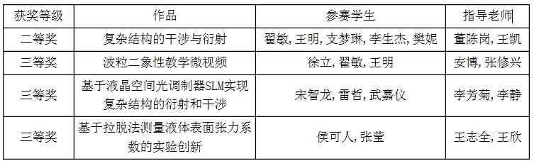 本次竞赛的校内选拔于8月份进行,经过两轮校赛选拔共选出4支命题队伍和1支自选队伍,代表学校参加了由西安交通大学物理学院承办的第一届西北地区大学生物理实验竞赛决赛。bat365官网5支参赛队伍获得二等奖1项,三等奖4项。综合分析5支队伍西北赛区成绩最终选出3支命题队伍和1支自选队伍参加全国大学生物理实验竞赛。