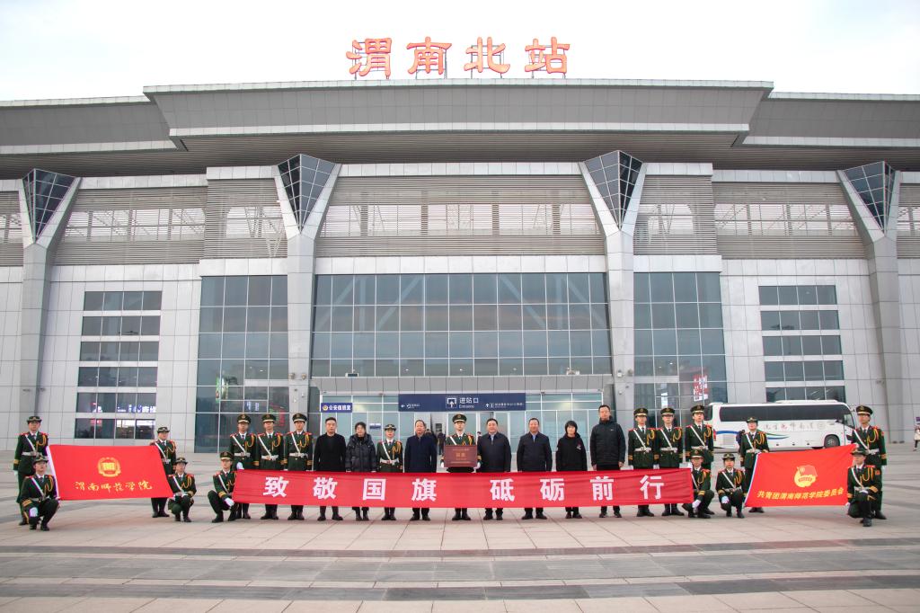 1月5日,在渭南火车北站举行了热烈庄重的天安门国旗迎接仪式,学校党委副书记汪勇、校团委相关负责人等带领学校国旗护卫队在站台迎接。