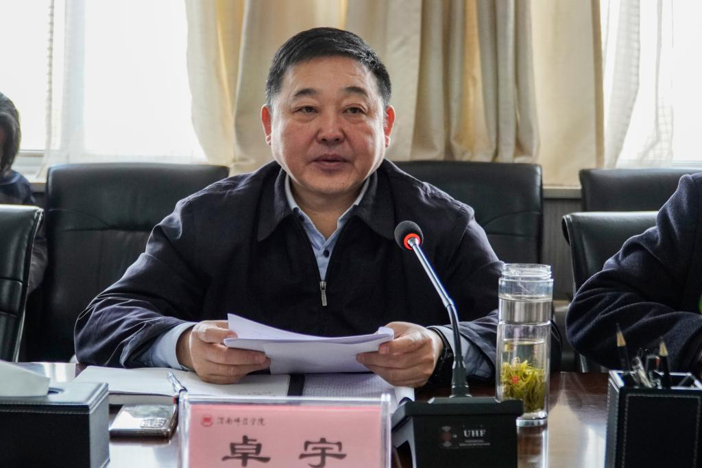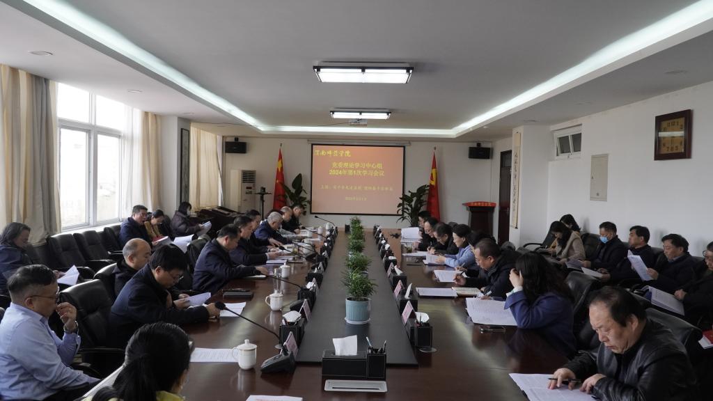 3月1日上午,学校召开党委理论学习中心组2024年第1次学习(扩大)会,围绕“实干争先走在前 团结奋斗启新篇”主题进行学习。党委书记卓宇主持学习会。