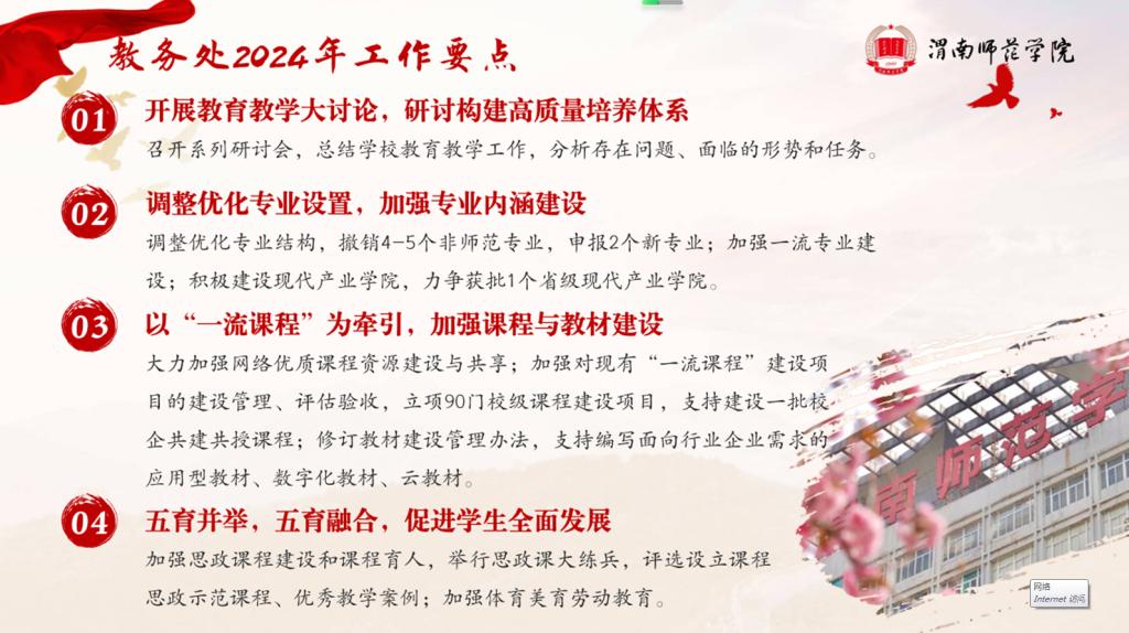 上一条:【要闻速递】党委书记卓宇深入一线检查课堂教学工作 下一条:【锚定目标笃行实干 聚力向前共谱新篇】各二级单位2024年工作要点图解(一)
