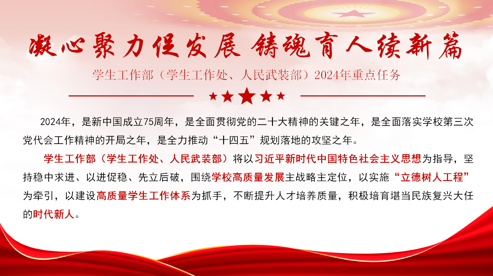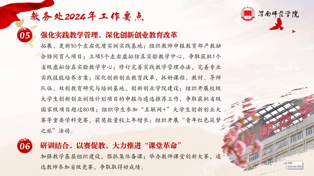 浩荡春风起,奋进脚步疾。为进一步明确工作目标、理清工作思路,营造干事创业的浓厚氛围,激发推动高质量发展的强劲动力,特推出“锚定目标笃行实干 聚力向前共谱新篇”系列报道,集中“晾晒”各二级单位2024年重点工作任务清单,“晒”出比学赶超的新方向,“晒”出实干担当的好作风,形成一项一项抓落实、稳扎稳打干实事的生动实践,以奋斗的姿态合力描绘学校事业高质量发展的崭新图景。