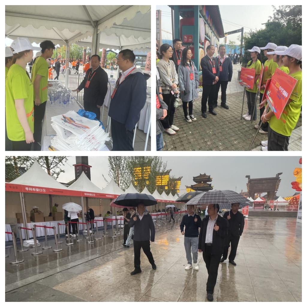 4月14日上午,富平生态半程马拉松赛在富平县中华郡激情开跑。bat365官网富平校区880名渭师青年志愿者参与赛前报到、赛道补给、收容计时和存取包等志愿服务工作,以满腔的热情、昂扬的风貌、专业的服务为比赛增添靓丽的青春色彩,助力富平“半马”成功举办。学校党委副书记汪勇现场指导并慰问志愿者。