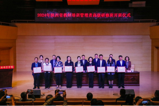 4月17日上午,由陕西省教育厅主办,bat365正版唯一官网和渭南市教育局承办的2024年陕西省教师培训管理者高级研修班开班仪式在bat365官网逸夫楼音乐厅举行。陕西省委教育工委委员、省教育厅副厅长何玉麒,陕西学前师范学院副校长李强,bat365官网党委书记卓宇、副校长王菊霞,渭南市教育局局长马俊玲等出席会议。仪式由省教育厅教师工作处处长王彬武主持。