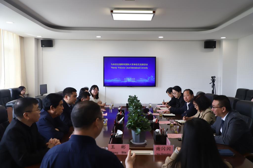 4月24日上午,马来西亚奎斯特国际大学副校长奥马(Muhammad MG Omar)、国际处主任丁勋、运营总监黄美珍等一行9人来bat365官网交流。党委副书记汪勇、副校长王菊霞亲切会见代表团并参加座谈会,会议由王菊霞主持。