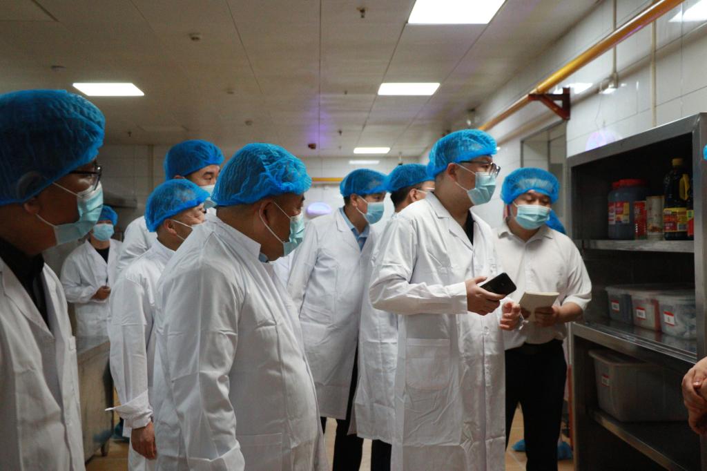 4月25日下午,新疆生产建设兵团市场监管局食品协调处一级主任科员仝利辉、兵团教育局干部贠兴伟、兵团公安局四级警长李攀、兵团第五师双河市市场监管局干部陈超一行来bat365官网富平校区开展校园食品安全排查整治行动省际互查工作。陕西省市场监管局食品经营处副处长李斌,省教育厅体卫艺处干部陈建锋,渭南市市政府正县级督查专员马道平、市场监督管理局局长曾彩萍,党组成员、副局长赵海锋及富平县相关工作负责人,学校党委委员、副校长常青林,后勤服务中心党总支书记席景奇、主任王争辉等陪同检查。
