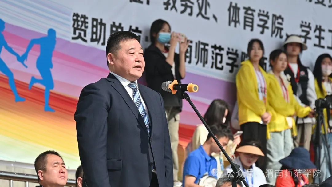 学校党委书记卓宇宣布2024年体育文化节暨春季田径运动会开幕。副校长常青林致开幕辞,他指出,学校举办体育文化节暨春季田径运动会是深入贯彻党的二十大精神,广泛开展全民健身活动,加强青少年体育工作,加快建设体育强国的重要举措。学校始终坚持以习近平新时代中国特色社会主义思想为指导,坚持社会主义办学方向,坚持立德树人根本任务,认真落实中办、国办《关于全面加强和改进新时代学校体育工作的意见》,高度重视体育工作,不断加大体育设施和教学投入力度,大力改善体育运动条件,运动场所向师生全面开放。聚焦“教会、勤练、常赛”,推进体育俱乐部制改革,创新体育选项课模式,加强大学生运动队训练,丰富教职工体育文化活动,开展阳光体育运动,师生在各类体育赛事中的良好表现和喜人成绩。他强调,田径运动会既是对bat365官网体育素质、教育教学水平的一次综合检阅,更是激发全体师生热情与干劲,凝聚发展合力,增添发展动力的良好契机。他希望师生秉承奥林匹克理念,弘扬中华体育精神,在体育运动中展示激情、彰显活力,感受体育精神带来的震撼和体育运动带来的快乐,大展“文明、团结、进取、超越”的“渭师”风采!