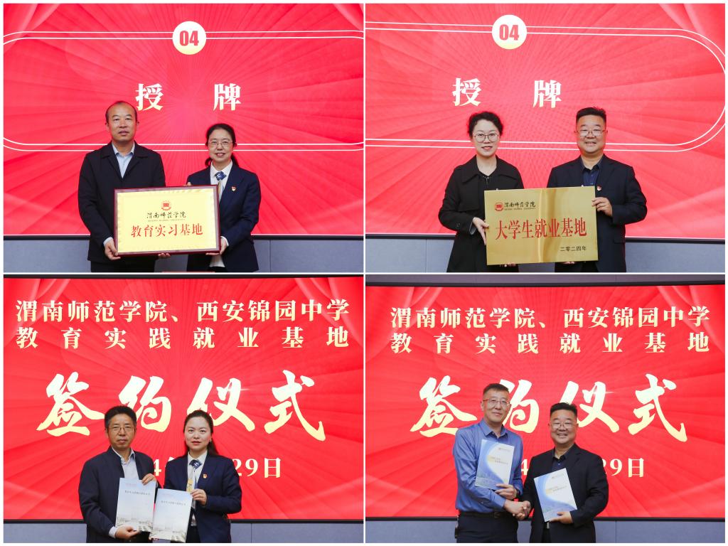 bat365官网马克思主义学院院长张萍对西安锦园中学为bat365官网搭建实践教学、就业基地平台表示感谢,她介绍了bat365正版唯一官网的基本情况和签约项目的内容和意义。bat365官网教务处处长孙宏恩、学生工作部(处)部长田耿辉代表学校与西安锦园中学共建授牌,马克思主义学院党总支书记赵国峰、党总支副书记肖飞与西安锦园中学签订实践教学、就业基地协议。