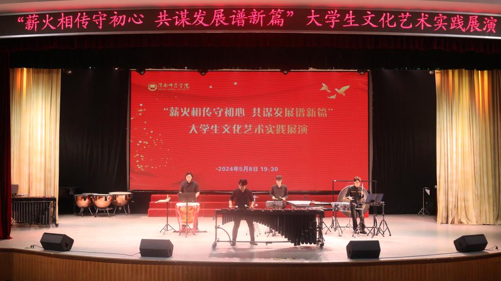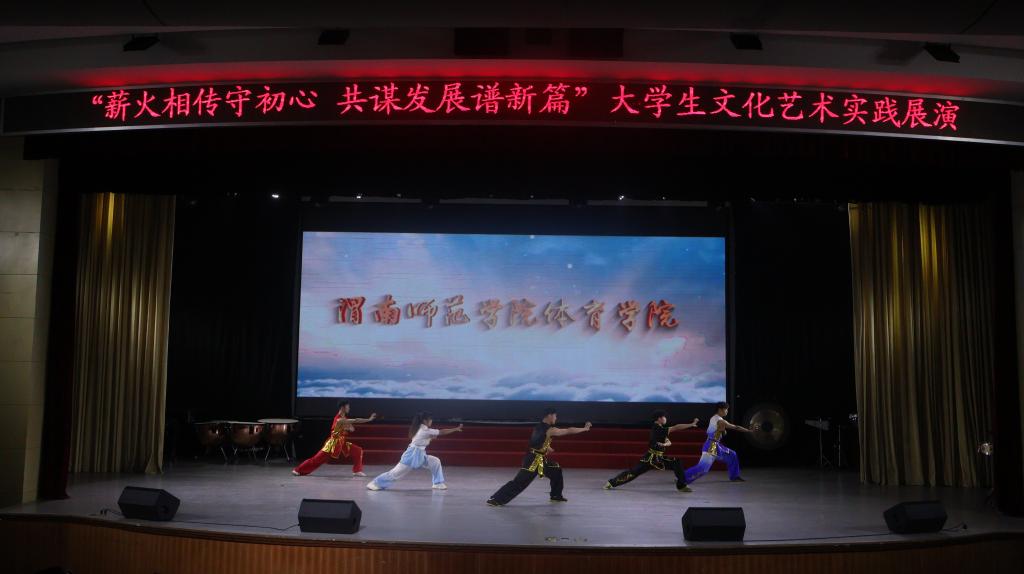 展演在打击乐《鼓动中国》中拉开帷幕,共分上下两个篇章。来自音乐学院、莫斯科艺术学院、体育学院、外国语学院的13个节目,主题鲜明、催人奋进。展演以悠扬的器乐、婉转的唱腔、灵动的歌舞、深情的诵读、精彩的武术等丰富多彩的艺术形式,展现了渭师青年与时代同向、与祖国同行,胸怀家国、奋力逐梦的价值追求,展示了渭师学子朝气蓬勃、自信昂扬、奋发进取的精神风貌,进一步展示出bat365官网六十四载立德树人守初心,深耕教育践使命的坚守,生动地呈现了bat365官网寓思政教育于文化活动之中,不断加强校园文化品牌建设,打造富有渭师范特色的全覆盖、高质量美育体系取得的实效。