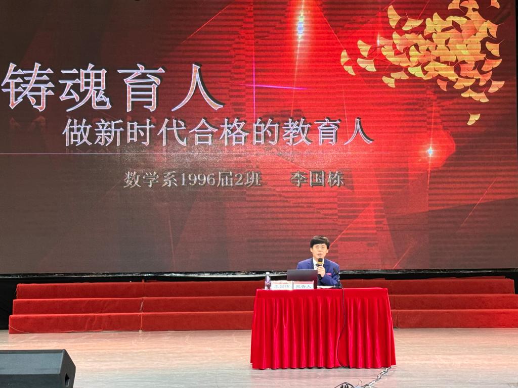 校友代表李国栋作报告《铸魂育人,做新时代合格的教育人》