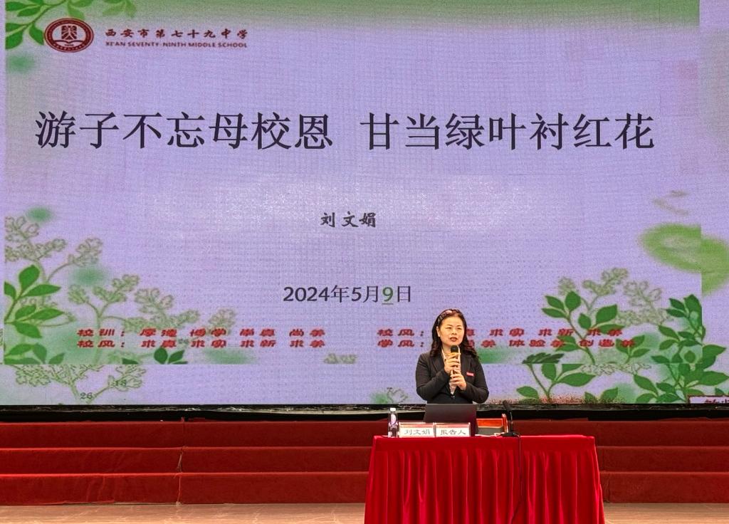西安市第七十九中学副校长刘文娟、西安市灞桥区庆华小学校长李国栋、西安市阎良区西飞二中副校长吕亚鹏三位校友为全校师生作了精彩报告,分享自己的成长感悟和故事。