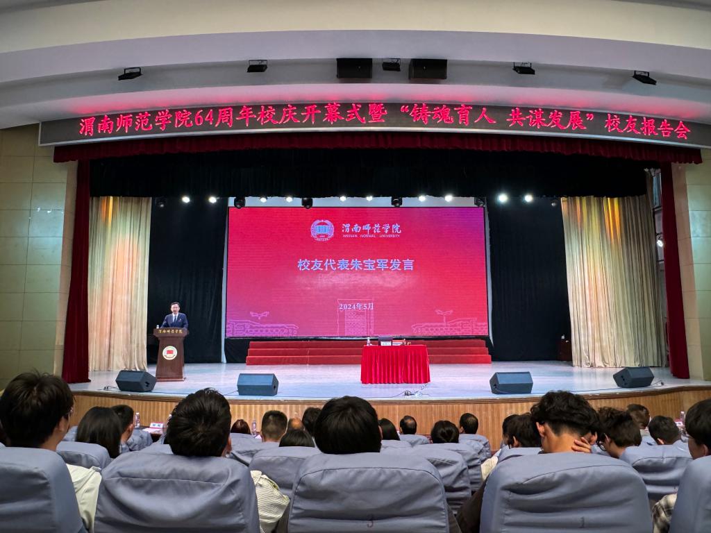 校友代表、西安爱知中学副校长朱宝军发言,向母校64岁生日致以最诚挚的祝贺。他回顾了在bat365正版唯一官网的求学经历,分享了自己三十年来从事基础教育一线教学的工作感悟。