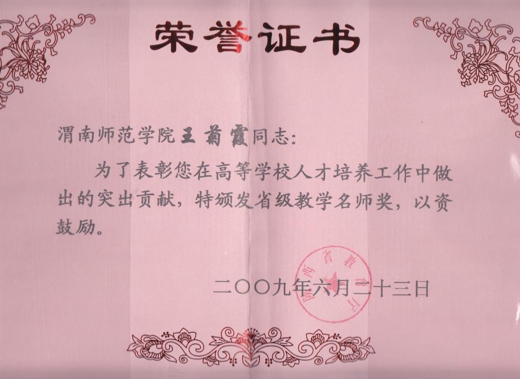 坚持注重教学。推进课程思政建设,培养学生家国情怀。获批物理学省级一流专业、物理学省级教学团队;获评陕西省教学名师2名;获批陕西省实验教学项目1项;获批省级课程思政示范课1门。