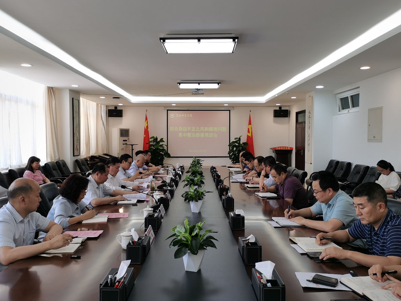 5月21日,学校召开群众身边不正之风和腐败问题集中整治部署推进会。会议传达学习了习近平总书记关于整治群众身边不正之风和腐败问题的重要论述以及省委书记赵一德关于集中整治的批示,对学校集中整治工作再动员、再部署。党委书记卓宇出席会议并讲话,党委委员、副校长常青林主持会议。