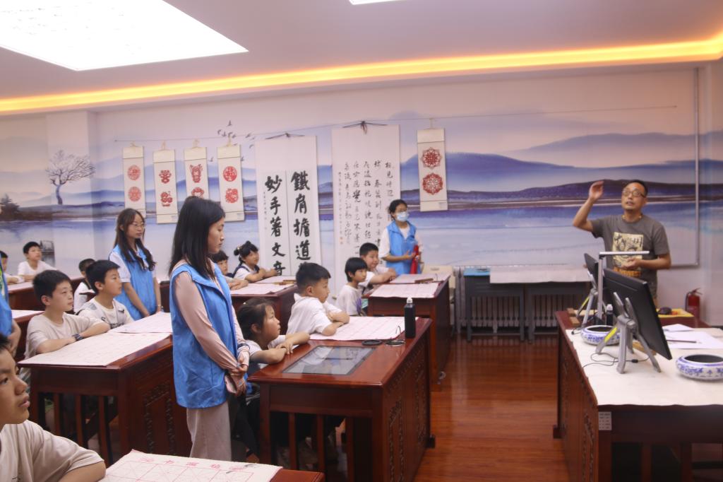 在莫斯科艺术学院,俄罗斯外教为孩子们上了一堂别开生面的音乐课,并参观专业书法、绘画展、学前手工制作展等。