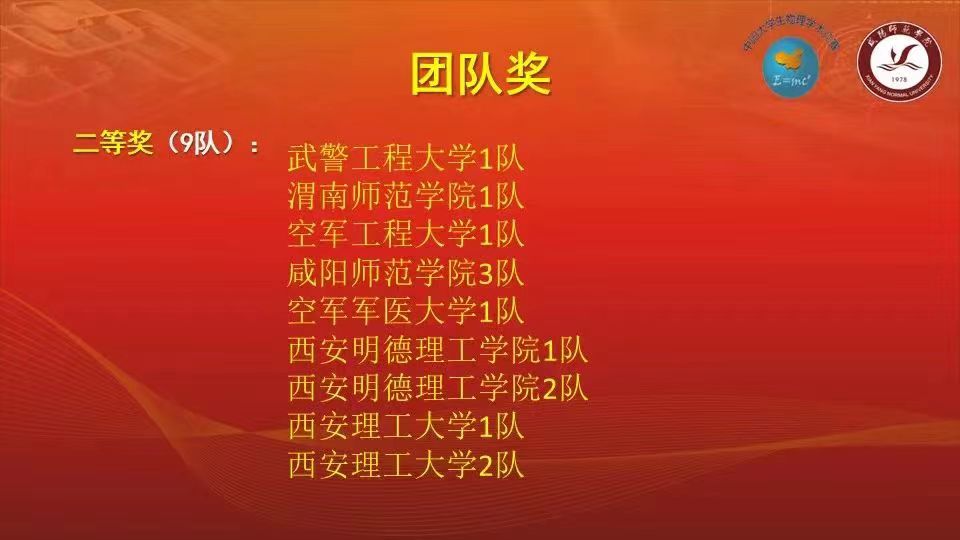 5月25日,由陕西省物理学会主办,咸阳师范学院物理与电子工程系承办的2024年陕西省大学生物理学术竞赛(线上)比赛开赛,bat365官网物理与电气工程学院12名学生参加了此次竞赛,经过激烈角逐,最终从陕西省16所高校的33支参赛队伍中脱颖而出,分别获得个人一等奖九项,个人二等奖三项,同时还获得团体一等奖的好成绩,实现了bat365官网自参加该赛事以来获奖的新的突破。