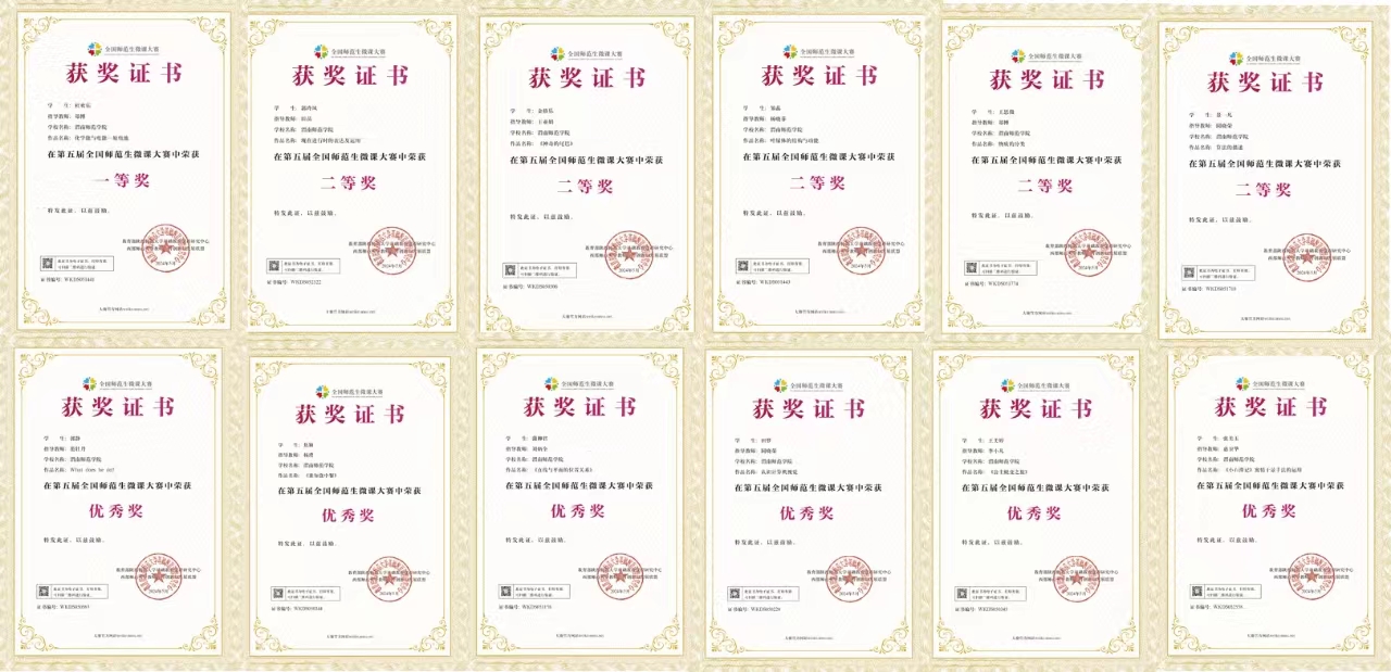 近日,第五届全国师范生微课大赛公布了获奖名单,bat365官网共有20项参赛作品获奖,其中特等奖2个、一等奖7个、二等奖5个、优秀奖6个。bat365官网获“优秀组织单位奖”,苗蓉、杨秀英获优秀指导教师奖。