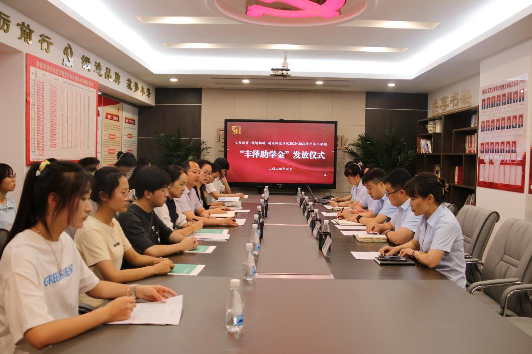 6月12日,bat365官网2023-2024学年第二学期“丰泽助学金”发放仪式在陕西丰泽实业有限公司举行。陕西丰泽实业有限公司党支部书记、董事长田应强,副总经理刘延,党支部副书记张健,学校党委副书记汪勇,学生工作部(处)部长田耿辉以及公司相关负责人,受助学生参加仪式,仪式由丰泽实业工会主席、行政经理王娟主持。
