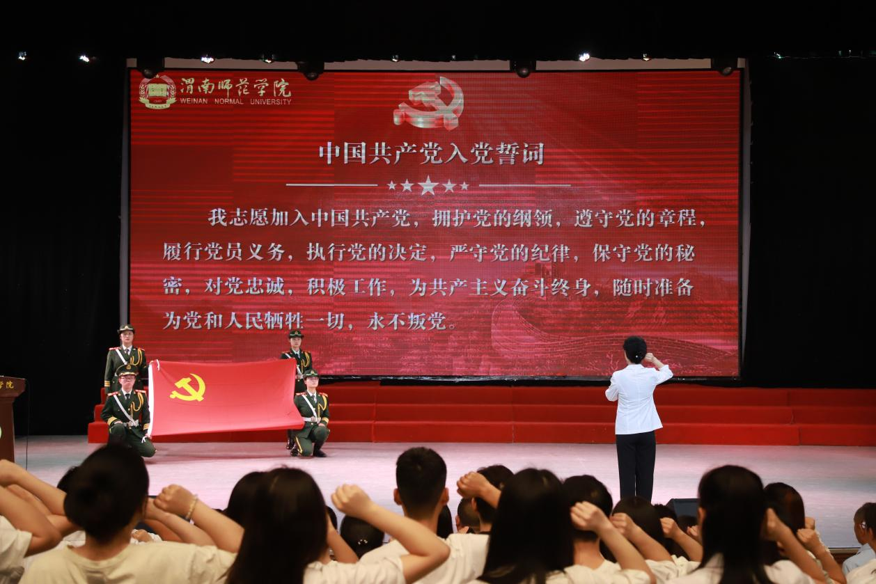 党课在庄严的国歌声中开始。与会人员在学生工作部(处)部长田耿辉的带领下,面对党旗庄严宣誓,重温入党誓词。
