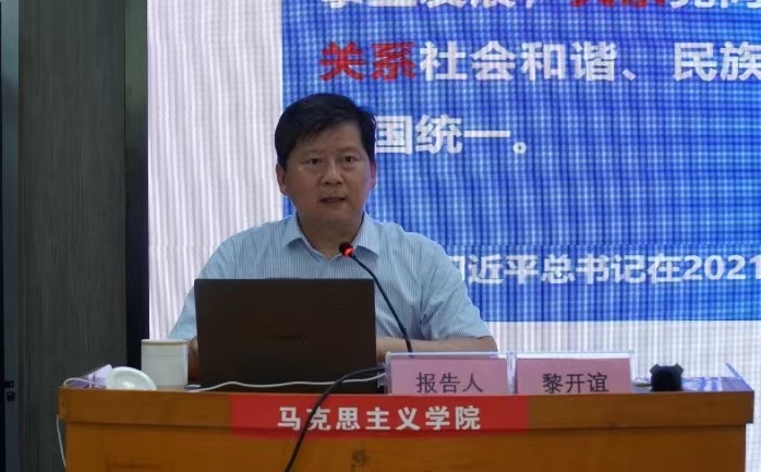 7月4日下午,bat365官网邀请长安大学党委副书记黎开谊教授作关于宗教工作的专题报告。报告会由校党委委员、统战部部长张勤恳主持。