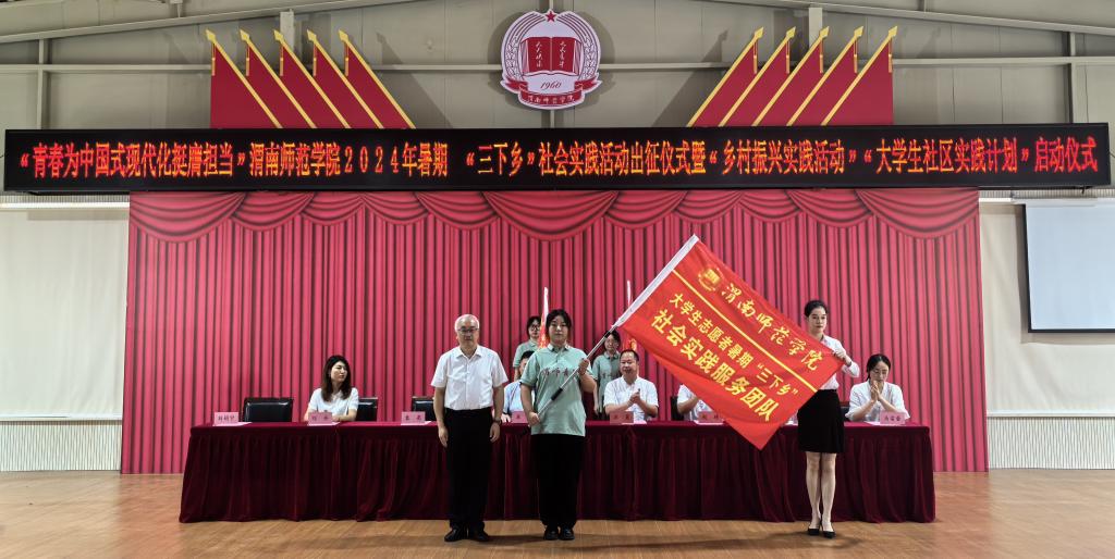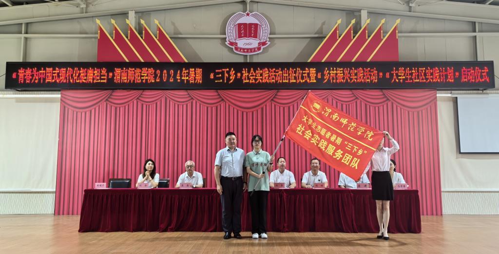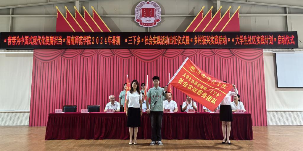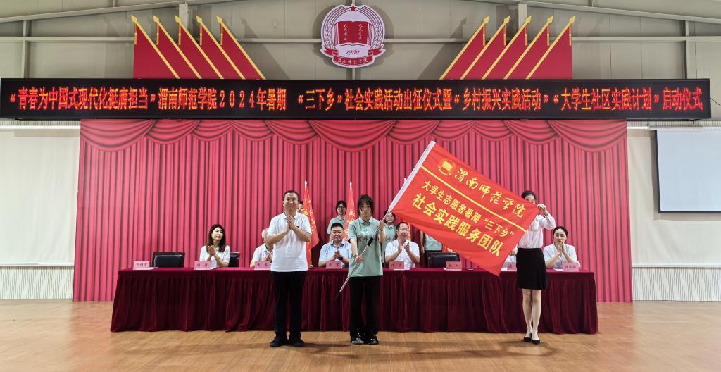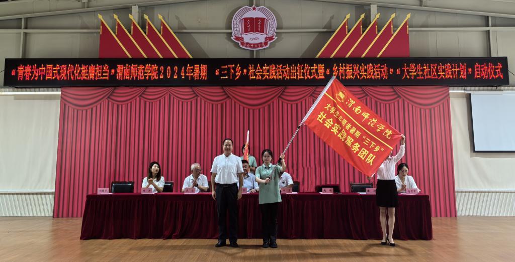 7月10日上午,bat365官网2024年暑期“三下乡”社会实践活动出征仪式暨“乡村振兴实践活动”“大学生社区实践计划”启动仪式在渭师青年之家举行,校党委书记卓宇,校党委副书记汪勇、袁亮,临渭区站南街道办师院社区书记刘丹等出席仪式。