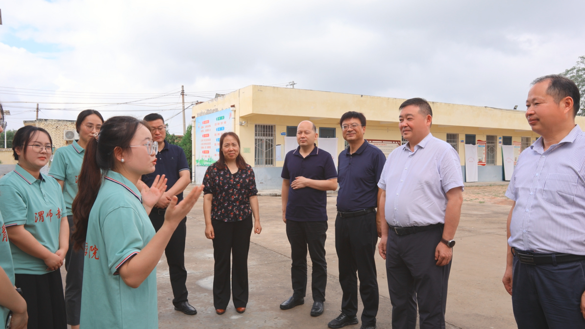 7月17日上午,党委书记卓宇一行赴澄城县王庄镇中心学校,实地调研指导教育科学学院“澄心支教路,用爱启未来”大学生暑期“三下乡”社会实践工作,并亲切慰问实践团队师生。党委副书记汪勇、袁亮,副校长常青林,党委委员、组织部部长田超,党政办主任刘永勤,校团委书记赵琦,教育科学学院党政负责人等陪同慰问。