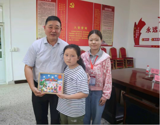 当天,孩子们在支教队员们的指导下,将自己创作的粘土画作品送给校领导们。