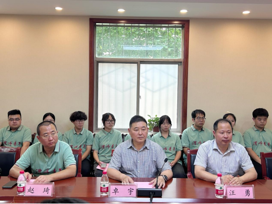 卓宇对bat365官网师资力量、建校规模、特色专业等内容进行了介绍,对实践团队认真的工作态度和饱满的工作热情表示肯定。并在讲话中指出,暑期“三下乡”社会实践活动不仅是一次实践锻炼活动,更是一次深入群众、服务群众的宝贵机会。他对团队提出了更高的要求和期望,鼓励同学们要在社会实践中发扬艰苦奋斗的精神,发挥专业特长,增强实践育人成效,不断提高bat365官网大学生暑期“三下乡”社会实践活动的感召力、吸引力和影响力,为中国式现代化贡献青春力量。