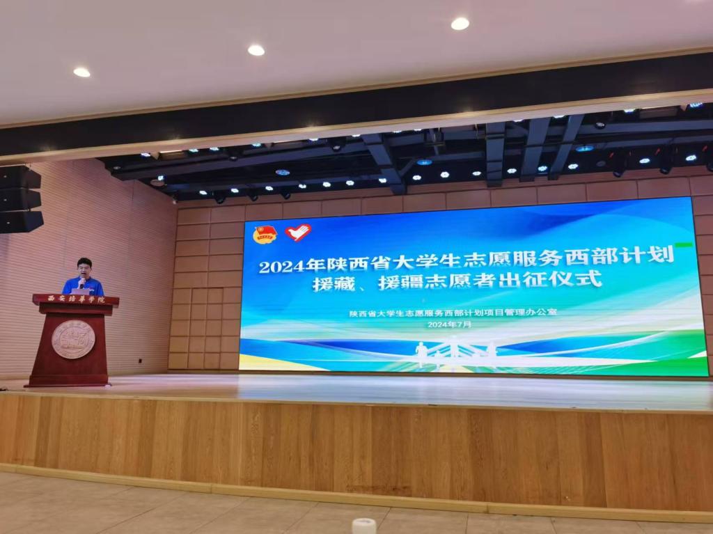 7月14日,2024年陕西省大学生志愿服务西部计划援藏、援疆志愿者出征仪式在西安培华学院举行。共青团陕西省委副书记、省西部计划项目办主任惠旋,团省委二级巡视员王军民出席活动并为援藏、援疆志愿服务队授旗。全省382名西部计划志愿者将奔赴西藏、新疆和兵团开展为期1至3年的志愿服务。