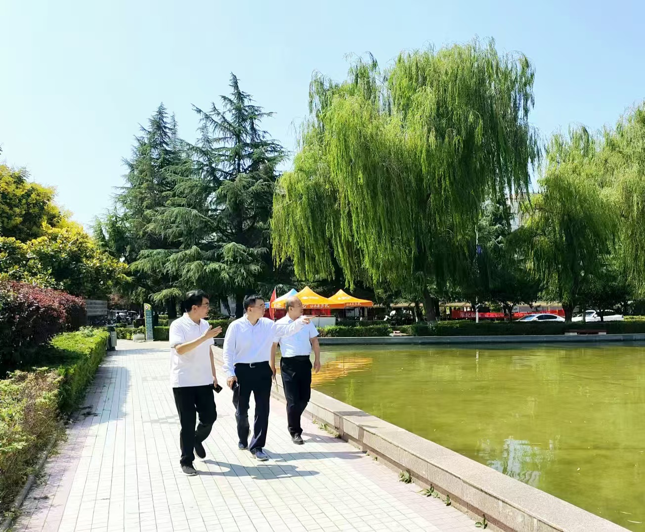 张守华一行还到镜面湖,对校园环境营造、提升工作给予肯定。