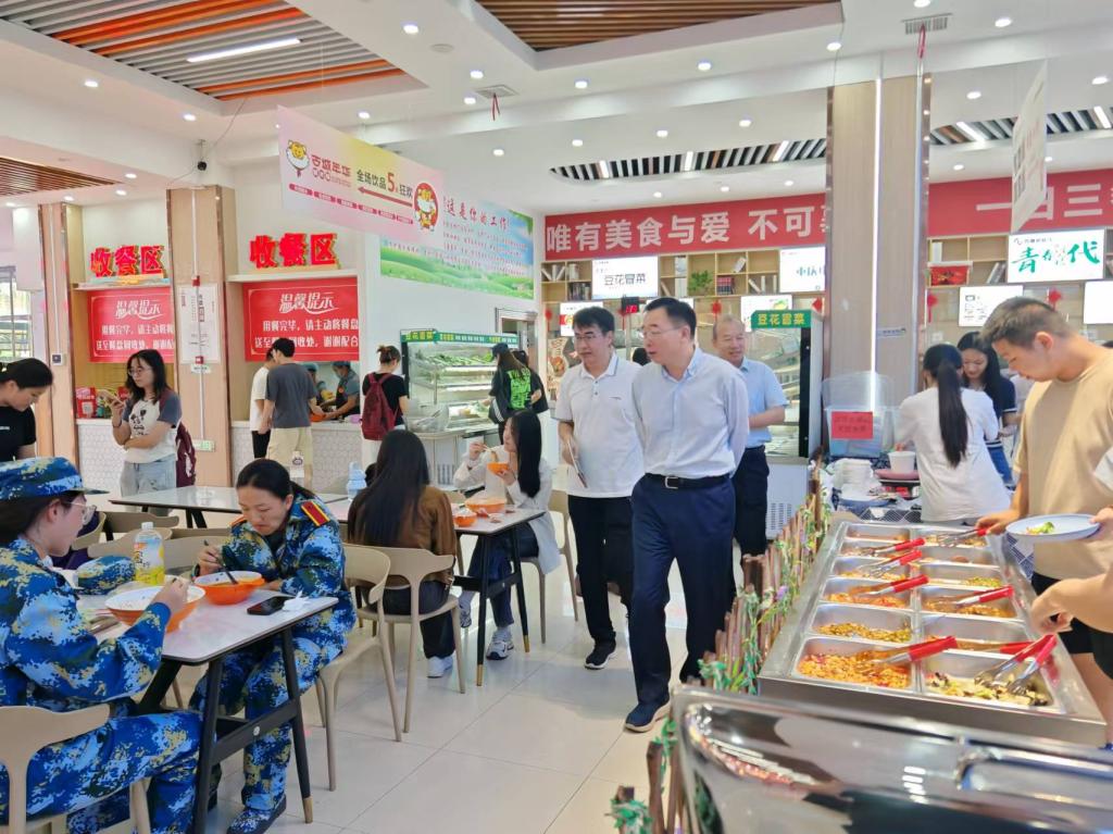 在调研中,张守华与学生亲切交流,耐心细致地了解大一新生来校感受、生活适应程度等,并与同学们交谈职业规划、了解学生学习状况以及生活方面的需求,听取学生对餐厅环境、菜品口味、种类、价格等方面的意见和建议。张守华表示,学校将全力满足学生们的餐饮需求,确保师生吃得健康、吃得满意。