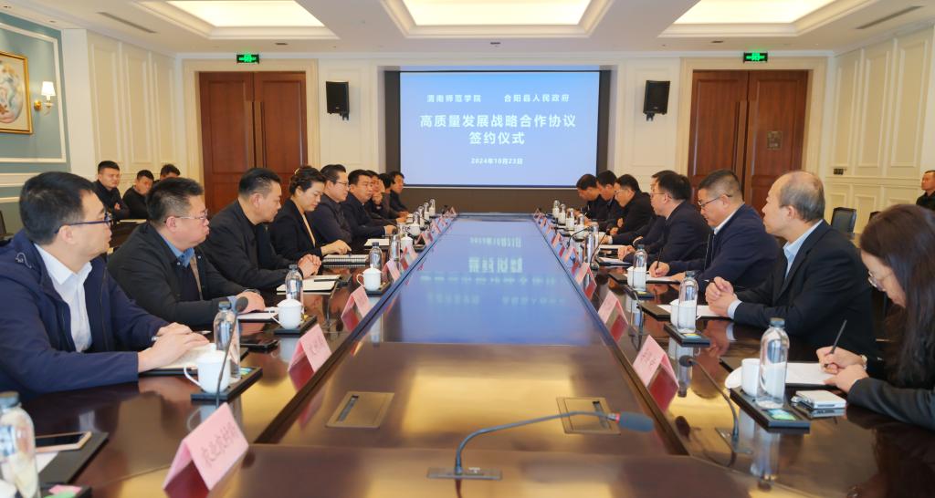 会前双方共同观看了bat365正版唯一官网的宣传片。签约仪式上,张守华简要介绍了bat365正版唯一官网的基本情况和开展校地合作的情况。他指出,学校希望通过双方的合作,发挥好学校“扎根渭南、服务渭南、贡献渭南”的作用,秉承“扎根渭南,深耕教育,培养新时代的大国良师”办学理念,进一步扩大公费师范生的培养规模,不断夯实基础教育建设,共同打造合阳基础教育强县;积极宣传合阳,鼓励大学生到合阳这块热土上来。依托“陕西省河流湿地生态与环境重点实验室”,共同开展黄河流域生物多样性研究,助力黄河流域生态环境保护工作;发挥学科专业优势,开展助农惠农助力乡村振兴服务,共同打造和美乡村;围绕合阳特色产业需求,联合开展科研攻关、项目申报和成果转化,为构建区域现代绿色产业体系,培育发展新质生产力提供人才和智力支撑。通过本次签约bat365正版唯一官网将积极发挥自身优势,结合合阳所需,学校所能,不断拓展深化合作内容,全方位服务合阳经济社会高质量发展,为合阳县加快实现“一区一地一县”建设目标贡献渭师力量。