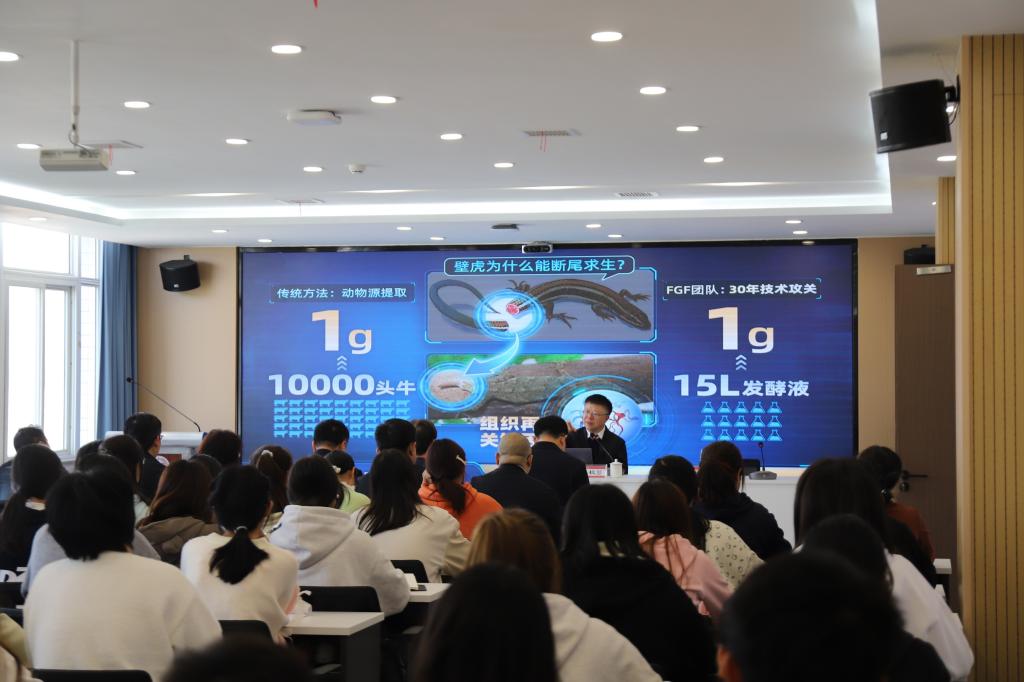 温州医科大学院士办主任、药学院副院长吴迪,温州医科大学药学院副院长卫涛,温州医科大学药学院技术转移办公室主任冯治国,陕西昆秦生物科技有限公司总经理王志刚,bat365官网副校长王菊霞,环境与生命科学学院负责人及教师代表、生物制药专业学生参加报告会。(通讯员 史森 审核人 吴逸群)