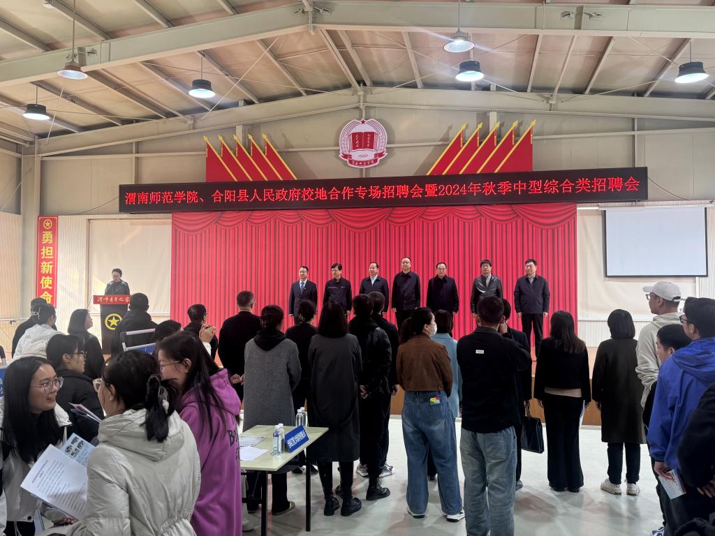 合阳县人社局副局长党锋杰、县教体局副局长李宏,学校学生工作处副处长、各二级学院党总支副书记、就业指导中心工作人员、毕业班辅导员带领毕业生参加招聘会。(通讯员 王哲 审核人 田耿辉)
