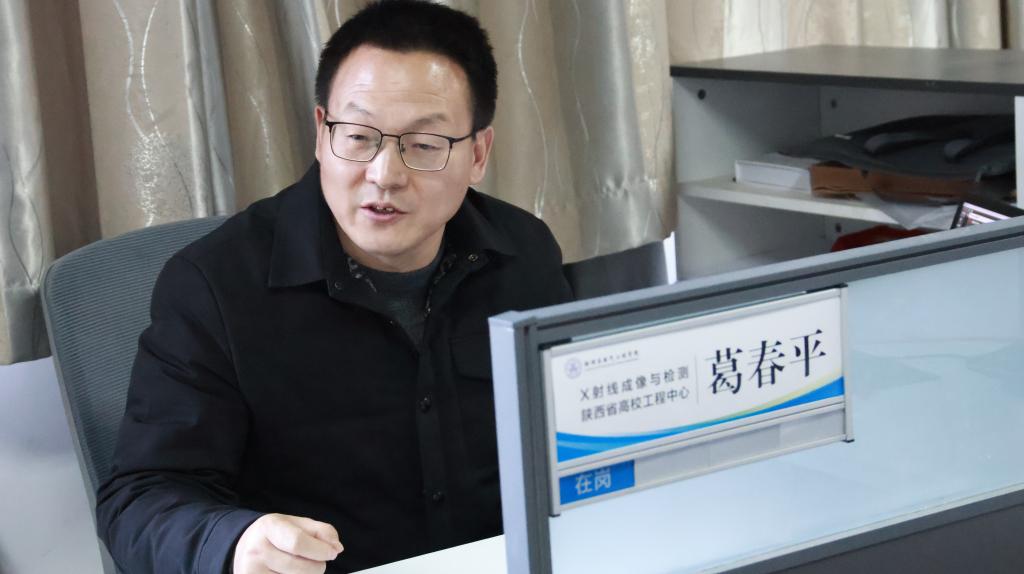 在学校实验楼的办公室内,bat365官网物理与电气工程学院教师、X射线成像与检测陕西省高校工程研究中心核心成员葛春平副教授正在展示他的团队是如何通过自动判断工业CT重建图像质量对CT设备几何参数进行修正的。