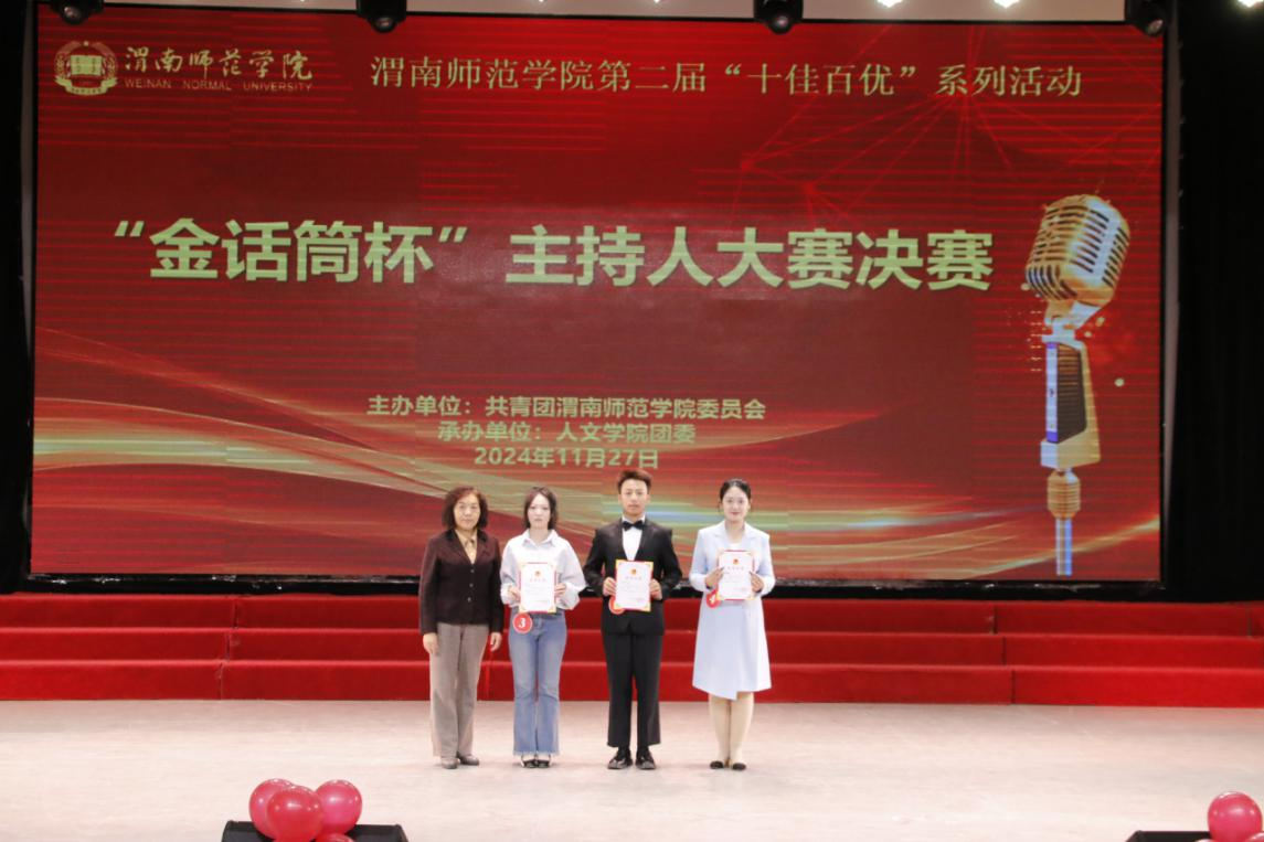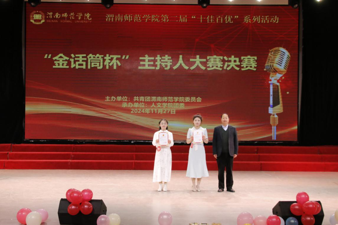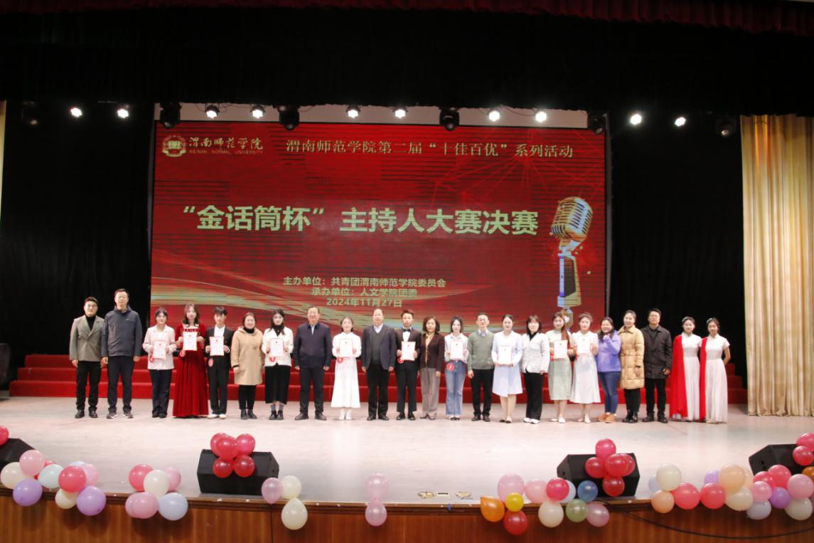 11月27日晚,由共青团bat365正版唯一官网委员会主办,人文学院团委承办的bat365官网第二届“十佳百优”系列活动—“金话筒杯”主持人大赛决赛在朝阳校区陶然楼演艺厅成功举办。学校党委副书记汪勇,副校长王菊霞出席活动。评委由bat365正版唯一官网学报编审詹歆睿、党委宣传部副部长石明、人文学院新闻学专业教师马丹担任。