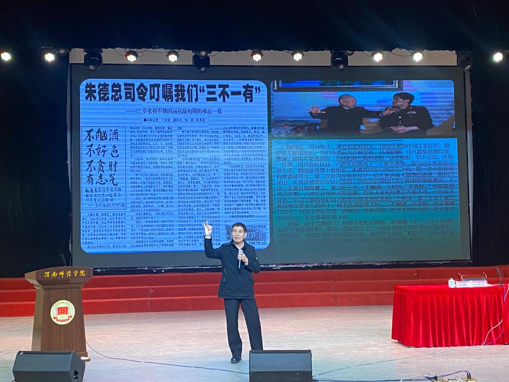报告会上,陶总编围绕“雷锋属于世界,雷锋是怎么被发现的,毛主席题词之追思,雷锋精神之源,前雷锋时代,雷锋精神滋养一代代心灵”六个方面。用宽宏的世界眼光、宝贵的历史瞬间、感人的时代场景,讲述了雷锋同志在平凡的工作岗位上默默耕耘,如何用实际行动践行“为人民服务”的宗旨。引导学生们思考如何将雷锋精神融入日常生活和学习中。报告会现场气氛热烈,陶克将军饱含深情的讲解赢得了师生们的阵阵掌声。